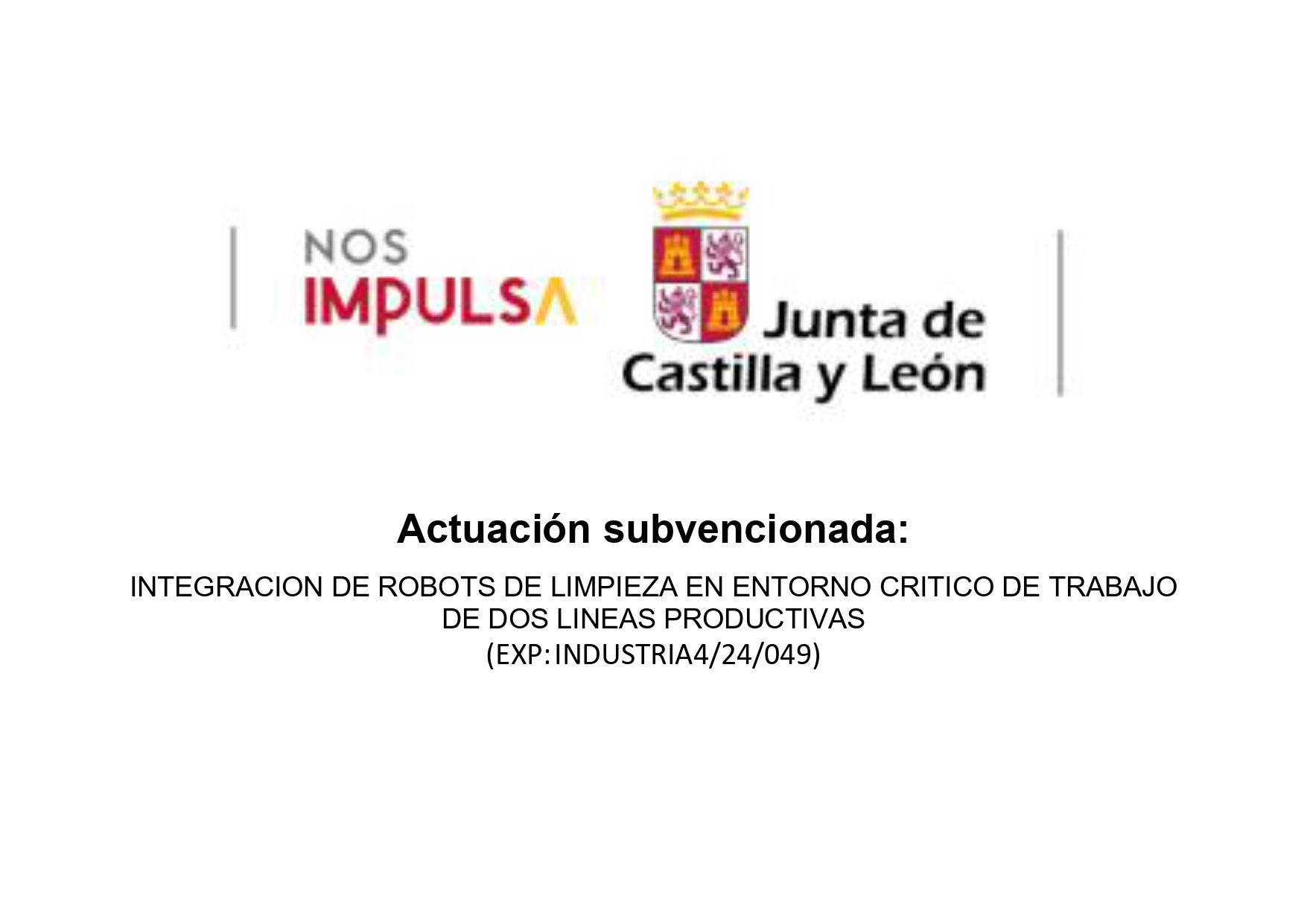 Subsidized action: Integration of cleaning robots in a critical work environment of two production lines (EXP:INDUSTRIA4/24/049).